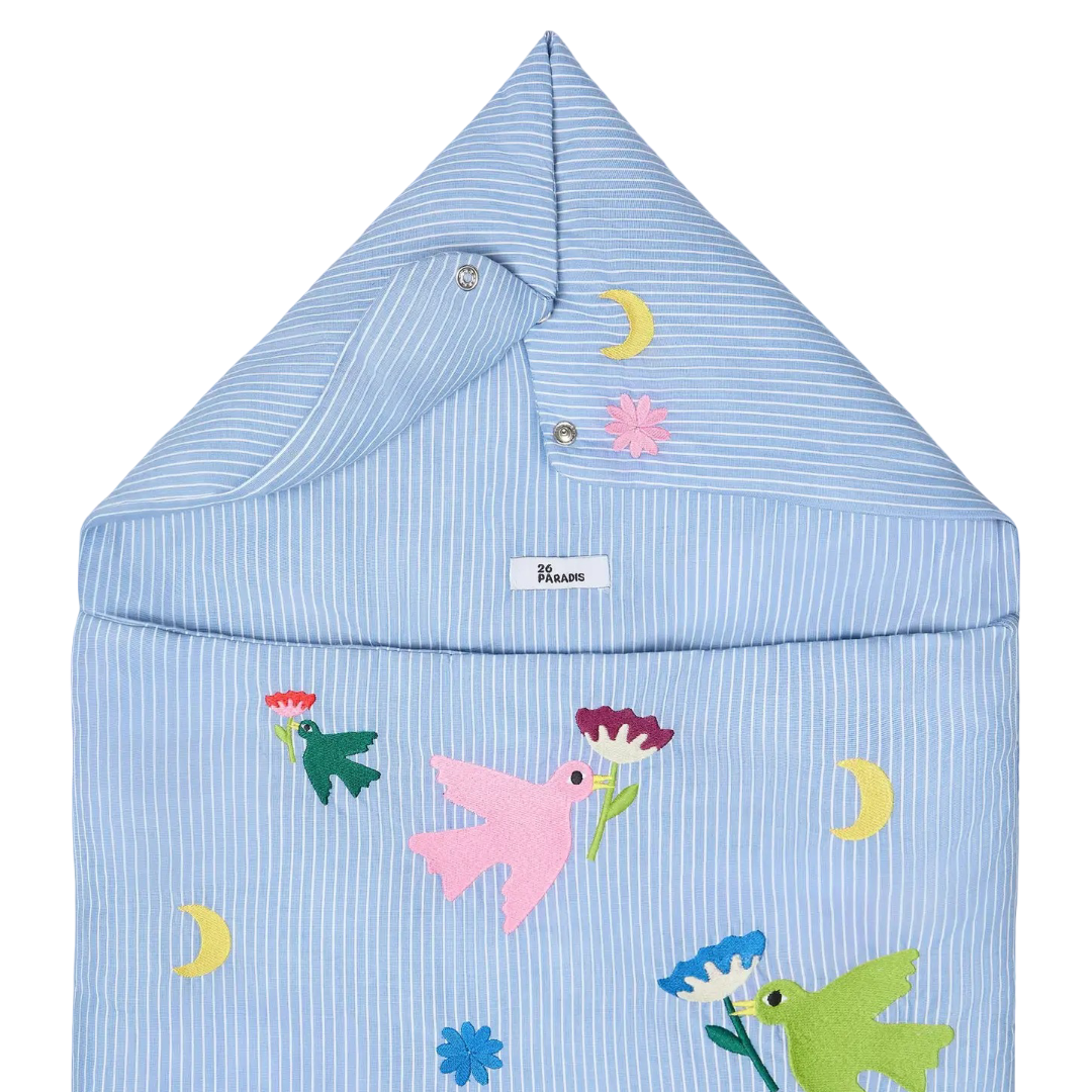 Discover the 26 Paradis Angel's Nest—a beautifully embroidered cotton sanctuary for your little one. Crafted from OEKO-TEX certified materials, this unisex nest features the brand's iconic pattern in soft, breathable cotton that keeps your newborn cozy and secure. Designed for versatility, it fits perfectly in strollers, carrycots, and car seats, with a practical back opening for easy car seat installation. An elegant and timeless gift that combines thoughtful design with everyday functionality, wrapping your baby in comfort and safety from day one.
