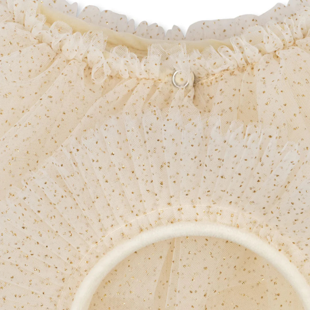Konges Sløjd Alette Costume. Transform playtime into pure magic with the Alette Costume by Konges Sløjd. This enchanting set features a shimmering glitter cape and matching headband, perfect for bringing fairy tale adventures to life. Watch your little one's imagination soar as they twirl and sparkle in this whimsical ensemble. Ideal for dress-up play, themed parties, or whenever the mood for enchantment strikes. Let the storytelling begin!