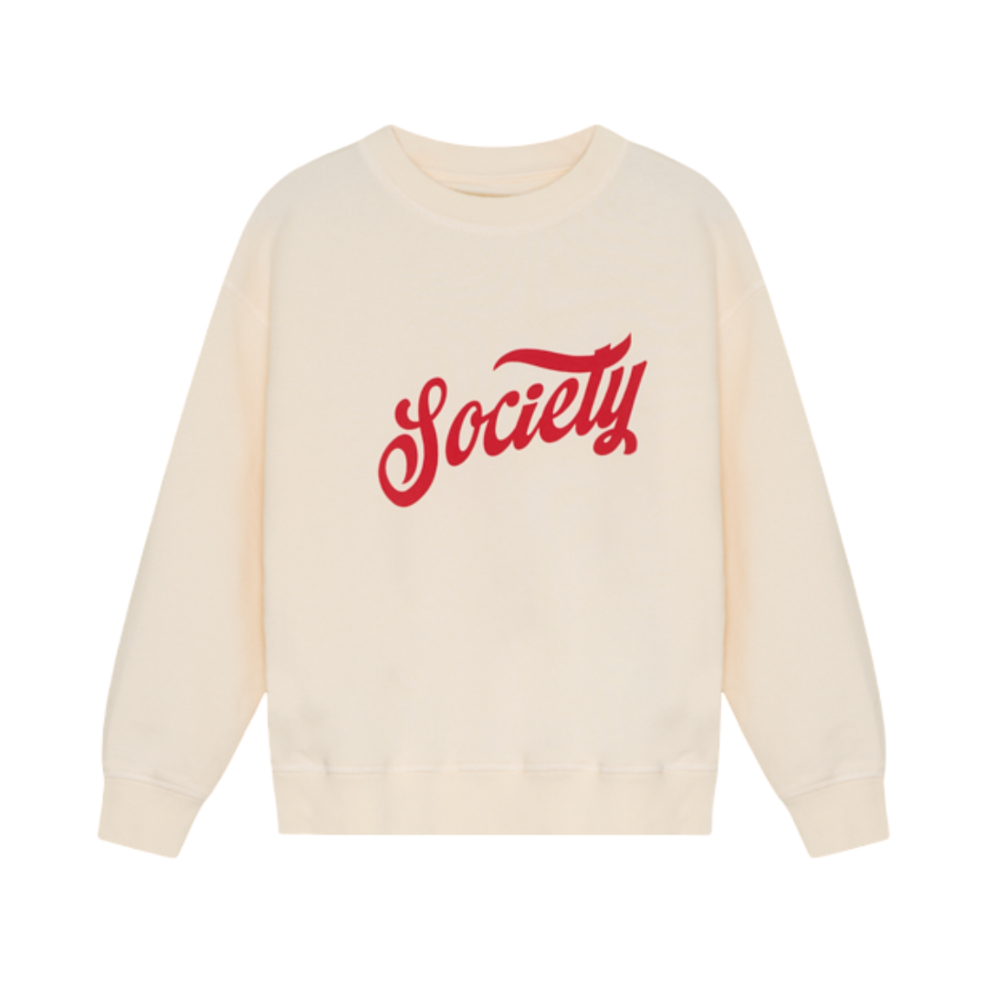 The New Society Tilo Sweatshirt Ecru. Featuring a bold red Society graphic that makes a statement, this piece delivers effortless style with its relaxed silhouette and buttery-soft cotton jersey fabric. Perfect for those who love comfort without compromising on attitude. Pair it with the matching shorts for a complete look that screams casual cool.